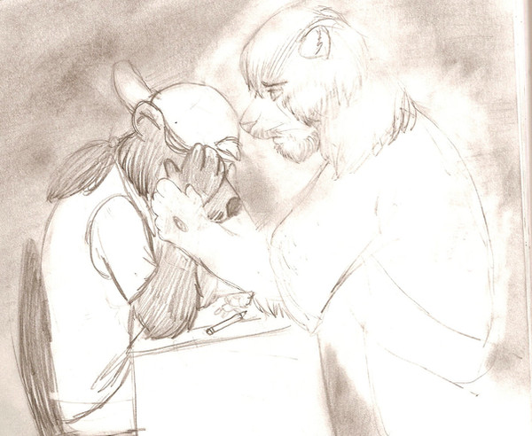 Very emotional, wonderful facial expressions but I would crop much of the drawing to center in on the couple.