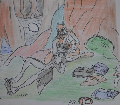 We really are like this sort of. He's a bit smaller than I am and generally more submissive and the most hilarious part is he's a RED fox and I'm a wolf!