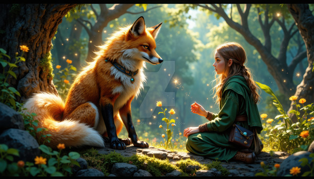 #magic #forest #fairytale #fantasyart #wallpaper #ai #fantasy #fox #girl #girlwithfox #happygirlwithfox