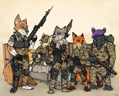 #anthro #bison #falcon #furry #guns #harpyeagle #helicopter #rabbit #residentevil #team #tiger