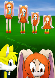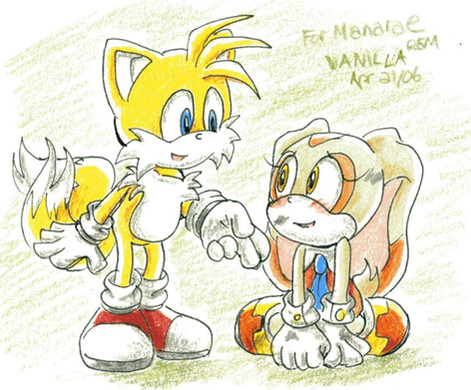 The male chars are (in very rare exceptions) totally flat(no stomach muscles, neither pecs). Female ones obviously are (in very rare exceptions too) totally flat-stomach(no muscles) but their chest area isn't. Sure when you look at Cream in this pic, she's flat like Tails but that's due to she wearing fur like Tails does, thus it wouldn't look acceptable if she had boobs under her fur. Unless you find a pic where she's grown up other way or her physical appearance was manipulated, she's at least as flat as the male ones since she's younger in the series than Tails by 2 years.