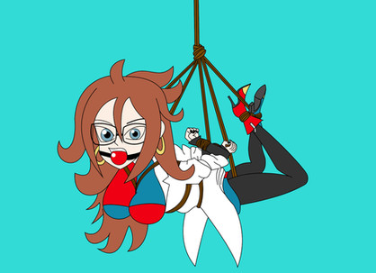Good golly hello denizens of DA it's been (checks) 13 days since I last uploaded 0____0 Sorry, had a bit of an art block for a bitAnyways here I am with the cutie android 21, she's one of my favorites ^^ and while hogtie is my favorite type of bondage, this pose is a close second lotus pose I believe it's called.