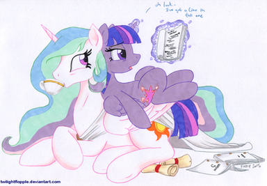 Wait, as alicorn, Twilight finished her study, should not she assign a homework for Celestia instead ?