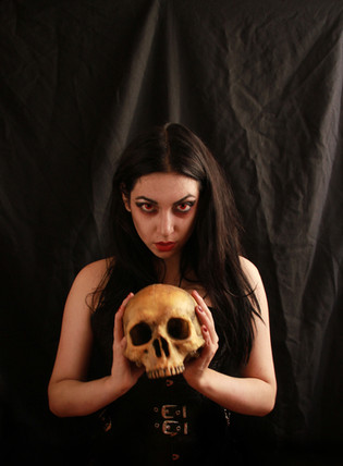 I will echo the comments of darik93, and add that her fingers almost make it look as though that skull was just recently dug up.
