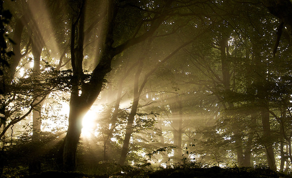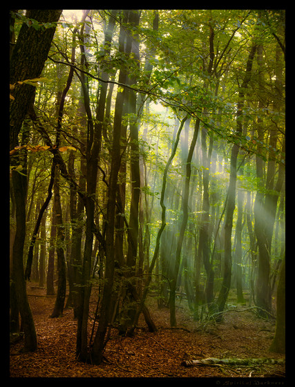 This picture was made in Noord-Brabant, the Netherlands during a walk in a forest around Christmas, 2004. The walk was specifically meant to take pictures. The day was kind of foggy, but also sunny, and individual sunbeams were visible. A serie of photographs involving these was taken, this being the one which in my opinion worked best. The photograph has been enhanced in contrast, saturation and colours.Updated on September 9, 2005 with some more postprocessing. Also renamed.