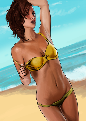 The folds in her clothes are good and the shading of/different skin tones are spot on.