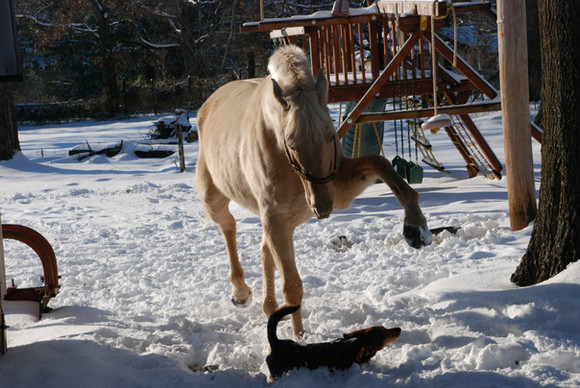 My dobie & the neighbors horsesRelated content