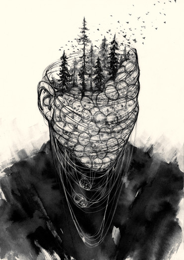 A bit Max Ernst like in composition and treatment and warping of landscape..