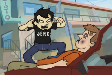 I remember when I first saw "Dan Vs. The Barber" which featured a scene where a character got stabbed through the chest with a pair of scissors (It was an accident and the scene was shown in silhouette, but it still happened). I was completely shocked and yet I still laughed at it.