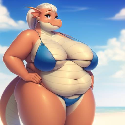 #ai #anthro #anthroart #beach #bigbreasts #digitalart #dragon #dragoness #dragongirl #furry #furryanthro #outdoors #scalie #bluescales #big_breasts #whitescales #scaliefemale #stablediffusion #stable_diffusion #hugebelly #hugebreasts #obese #obesewoman #fatgirlbelly #obesebellygirl