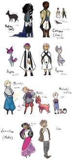 -uhg remind me to redo this piece later yeah?-okie dokie :'D So this is the piece i've been working on recently of all my Main characters in my story im working on Procrastinating on. You've seen a few of these guys running around recently but i figured it'd be cool to get up at least the headshots of all the others, and then it turned into this :'D