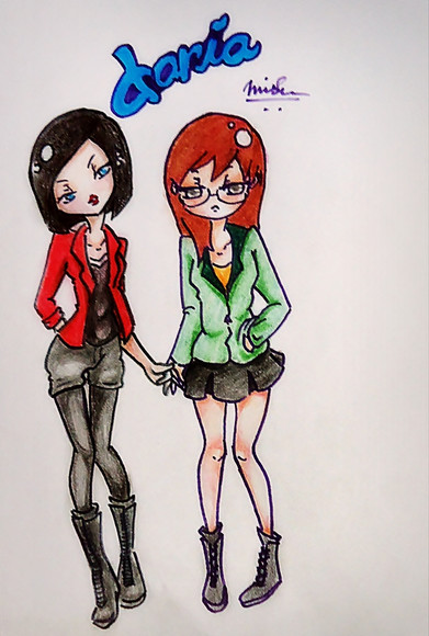 Daria Morgendorffer and Jane Lane from 'Daria' seriesShe's brilliant! And series brilliant, OMG, my f*ckin' ideal of schoolmate...they reminds me of me and my best friend Eve when we was at school. I was rather Jane than Daria...