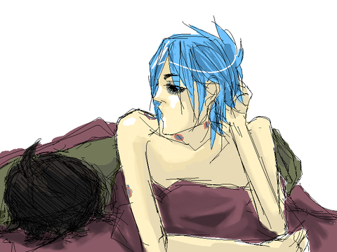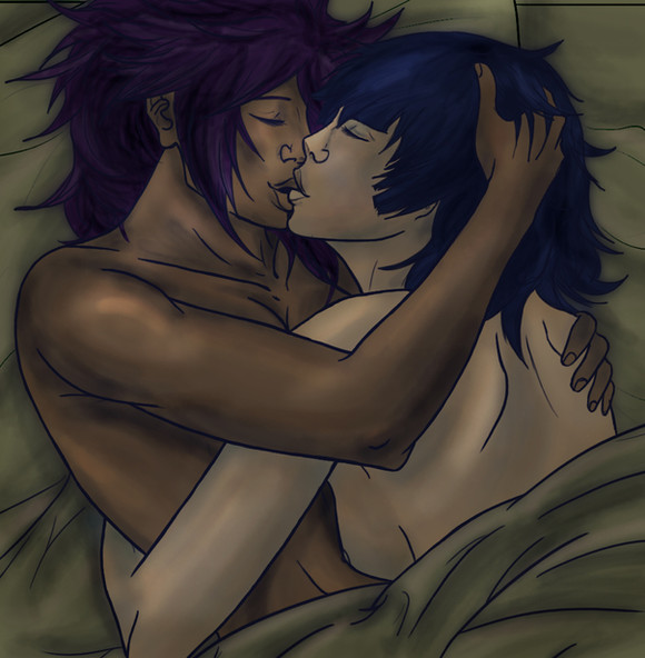 So much sexy up in thar! But I like how it's not like, raging hardcore porn. There's something gentle and loving and tender about this pic. Beautiful work, especially with all the folds in the sheets. Those are DAMN hard to draw.