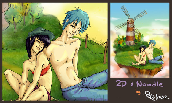 BRILLIANT! I almost fell of my chair. I love the colors, love the details, love how it displays the mood and the atmosphere. Excellent! Love it! Love it, love it, love it! Love this pairing! Even though you don't, I appreciate you giving a great gift like this to the 2D/Noodle fans