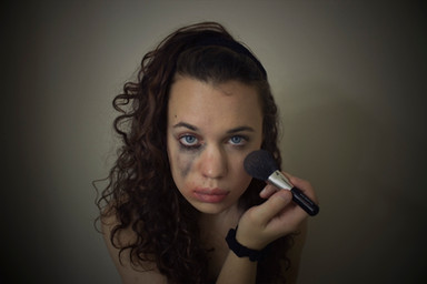 The bare shoulders and lack of color are very nice and does give you that sense of bleakness. I might try to wash out the wall a bit more especially the shadow behind you. You could do that in post.