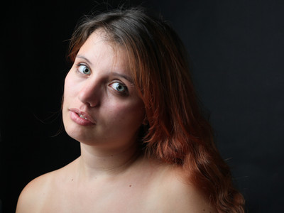 I do agree with the other critique in that you need to slide off center a bit. You definitely should be more to camera right in the frame in my opinion. I don't know that I agree about your eyes however. As I said on another shot I would prefer your eyes straight into the camera. You have gorgeous big eyes that would stare straight into the soul I think.