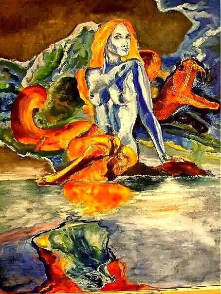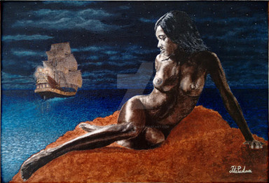 #acrilicpainting #rocks #sea #asianbeauty #breasts #island #mermaid #moonlight #moonnight #naked #sexyhot #siren #waves #nudeartistic
