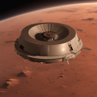 Using its inflated atmospheric decelerator the Mars lander slows down during the entry interface. If this concept works - and the first NASA tests look promising - this will open a new way to land heavy payloads on the Martian surface.The picture is a screenshot taken from the Orbiter space flight simulator.
