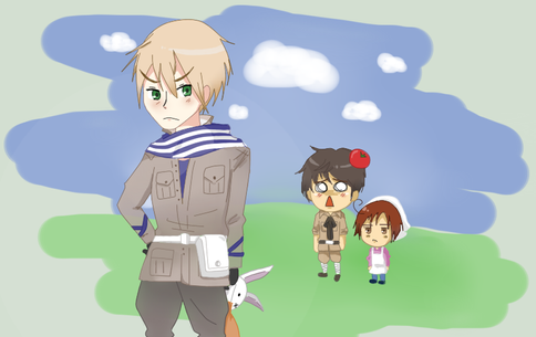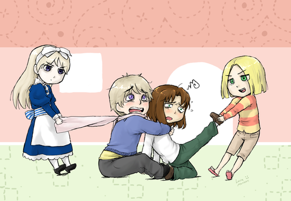 Jajaja es que me imagine que si el disfruto de que le quebraran los dedos XD ( aunque crea que le tomo la mano) cargarla en sus hombros seria el paraiso XD ( auqnue sea para perseguir a Russia owo .. el solito crea sus historias y no se da cuenta XD)