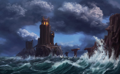 #castle #clouds #digital #gate #painting #river #rocks #trees #wood #environment #landscape