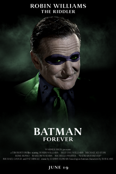 Joel Schumacher asked Robin Williams for the role, with the Batchlers writing it with his comedic delivery, and Robin talked to Akiva about The Riddler in his kitchen. Robin read the script for Batman Forever and he loved it. Due to a salary dispute, the role went to Jim Carrey.