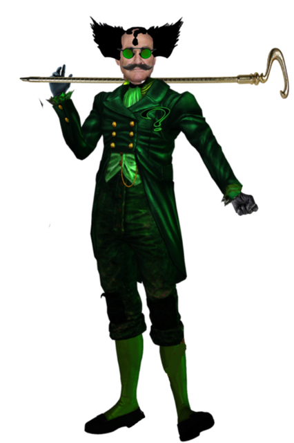 Knottyorchid12 did an art of what the Robin Williams Riddler may look like. He thinks that he's Tim Burton's choice for The Riddler in his unproduced Batman 3 title "Batman Continues" and he thinks that Burton came up with an idea of The Riddler with a question mark shaved into his head as you see here. He thinks that Williams as The Riddler was going to be dark and creepy, but he's wrong and that's not true.It has revealed that it was not Tim Burton who wanted Robin Williams as The Riddler. It was Warner Bros., the Batchlers, and Joel Schumacher who wanted Robin Williams to play The Riddler, since Tim Burton pass on the torch to his friend Joel Schumacher to continue with the franchise, and they already had Tommy Lee Jones as Two-Face. Lee and Janet Scott Batchler wrote The Riddler with Robin Williams in mind, and he would be the same over the top/flamboyant Riddler as was in the final film. Some people think that Williams got the part, but couldn't get to play the role, because he was screwed over again, same thing that happened to him before when WB used him as bait to trick Jack Nicholson into the role of The Joker in Batman 89, but that's not true. It has revealed that there was salary dispute. Williams wanted too much money, and Michael Keaton himself wanted too much money. So, Warner Bros. and Schumacher decided to go with Jim Carrey instead.