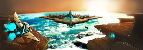 Visual concept for the floating city of Psionic. One of the cities featured in the game. Psionic is the most technological advance faction in the world of Tuebor. It is home to those who seek higher intelligence.