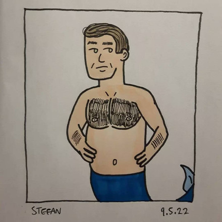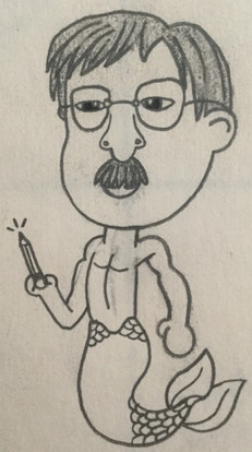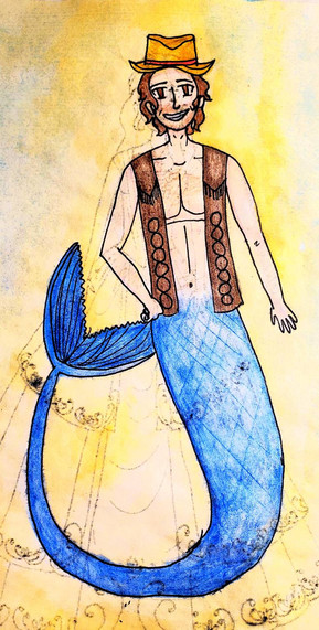 Merman Carl is not impressed by your mermaid pictures.I borrowed some cheap markers from a friend to color Carl here but as you can see on the tail, I didn't do very well. I tried fixing it but after a while it looked like I was going to tear through the paper with the marker so I gave up. His skin tone was done with a color pencil just so he didn't end up looking completely awful; he deserves better, I mean, look at that glint in his eye.