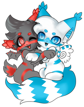 commission for !Hopefully it looks okay! sorry if it doesnt look chibi enough, it was kinda hard trying to make them chibi in the position they are in for some reason @_@"