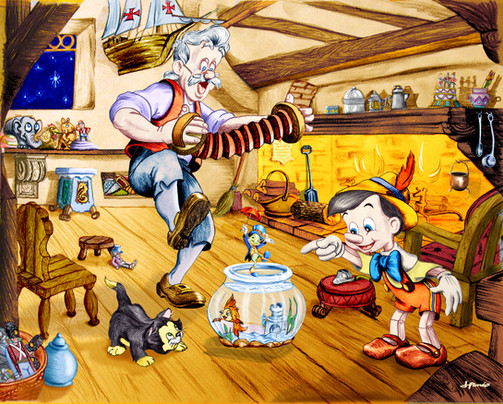 Pinocchio and his goldfish alone is kinda boring, so I added in the Cricket, Fox, Cat, and Dogfish (which was adapted into a Whale) from the original version of the Italian story Le Avventure di Pinocchio by Carlo Collodi.
