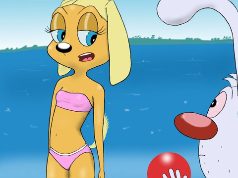 Well, considernig that those two have been standed together in God-knows-where for so long and were forced to live in a makeshift treehouse together...it doesn't surprise me at all, Mr. Whiskers's reaction (I've also seen an episode wherein Brandy wore socks with her thonged sandals, but they were part of a "Hot Dog On A Stick"-esque uniform for a job she and Whiskers took, though Whiskers did all the work while Brandy socialised, wall-walked, etc.)