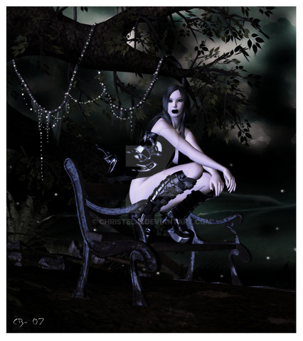 I like the whole thing, but as well as that, i like the little bits in it, like how her hair sort of blends with the trees a bit on the left, and the little stars everywhere; she's like a broken hearted queen of the universe Pretty girl too.