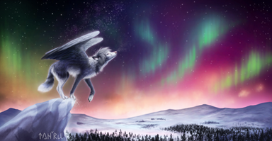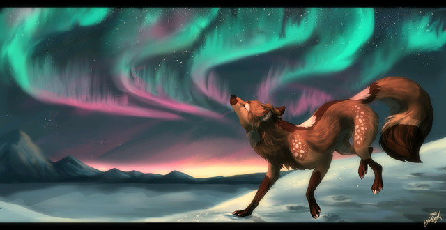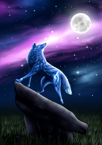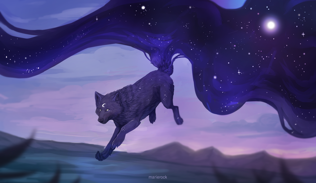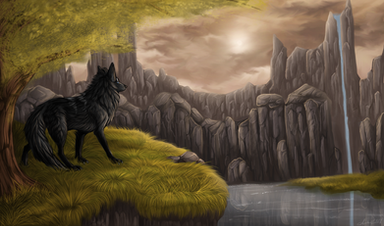 oh this is absolutely beautiful! the sky and the background in general are absolutely flawless and the wolf looks just as incredible <3