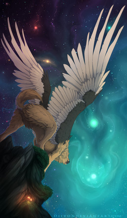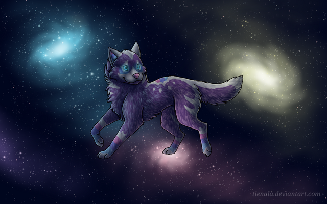 Absolutely stunning! I adore the spacey background and the colours which bring everything together so nicely. The glowing blue trails from the character's paws add a lovely sense of movement, too. Plus very nice composition. Wonderful work! :]