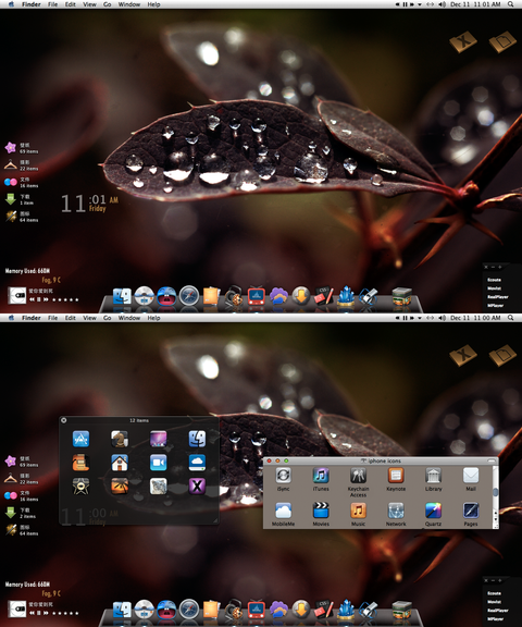 As for the dock icons this is the end result of me knowing my way around macthemes and deviantart too well so they are not in a pack. Here is a link to them though -