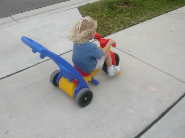 My brother riding without training wheels for the first time.He is wearing my old elbow pads on his knees, lol.