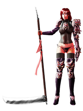her weapon gets me all ,from the length of the blades to the dips and swirls mixed into the metallic surface to the flare at the ending.