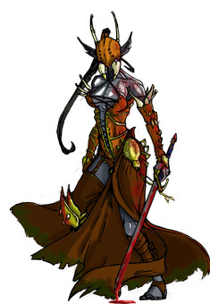Scorpius looks amazing! I love the dramatic weapon and almost insectile armor on her legs.