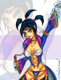 The planet Sargas was a matriarchal society ruled with a godlike authority by the Empress Akeldama in a harsh caste based society. Taking consorts as she pleased, Empress Akeldama initially bore a single daughter, Velia. Velia possessed the healing blood, a rarity among even the royal bloodlines. She was raised and considered to be her mother's pearl. Even as a toddler she was initiated in the expectations of her position. The world, especially the poorer castes, interpreted the Empress bearing a daughter with the healing blood as a religious sign that the Empress was indeed their divine ruler and this heir would care for them. This was a much needed salve to a large part of the population that was beginning to become inflamed with the injustice of caste system. Soon, the Empress found a new favorite consort and bore another daughter, although without the blood trait. The Empress immediately favored the new daughter because she bore of a physical resemblance to her. In addition, Empress sought to punish Velia's father for marrying a lower caste after their trysts. It wasn’t long before Velia was removed from position, higher caste, and all connections to her mother. She was even stripped of her long meaningful name which is an attribute of the upper caste and given the singular name of Selcis, singular meaningless name like the rest of the lower caste. Still a young child, Selcis was actually content to live with her father and new wife in the lower caste. She was loved and nurtured in this home until the new princess was injured. Selcis dragged back to the royal home only be to be drained of her healing blood in order to save the new princess. Selcis was imprisoned and drained in hopes of having the blood on reserve for the heir. However, the healing blood does not work if the recipient and donor are not willing. Selcis was anything but willing to help the mother that had cast her out. The Empress was enraged at Selcis' defiance and used her father's life as a bargaining chip. The Empress required Selcis to be bodyguard companion of the princess as well as provide any blood for healing in exchange for keeping Selcis' family from execution. Thus, Selcis was trained in the Sargas sacred martial arts (similiar form to Changquan), the use of a rope dark, and healing.