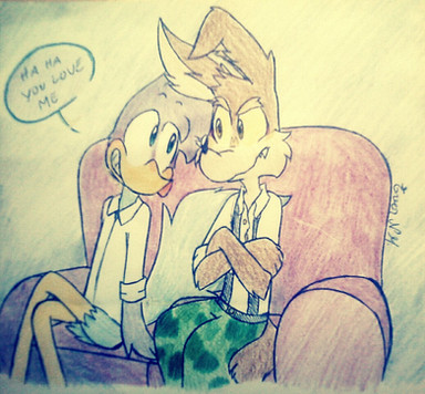 Alternate title: "I have your love!"I felt the need to draw Tech and Rev today, so I sat down with an A5 piece of paper in front of me, getting ready to do something, when I realized that I had no idea what to draw! So, I turned my music on, and there! I heard this: [link]