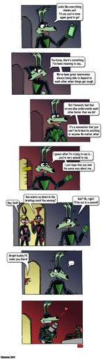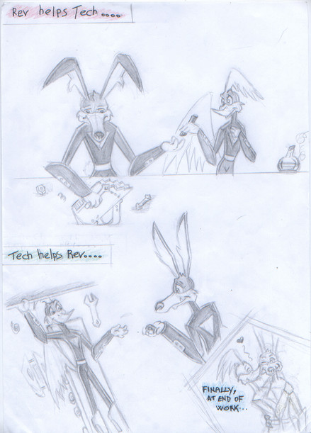 After I seen the last panel, I was like "Dammit!" Your clever. Great work! I LOVE the designs you draw! I want to draw like you one day. And I say that to every artist that's better than me