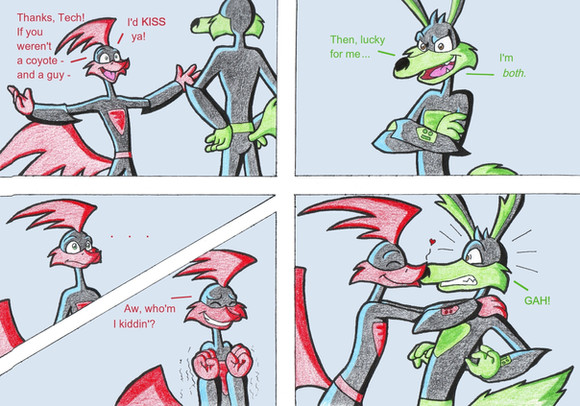 At least Rev can do what he's supposed to. Scratch, have you ever actually caught Sonic? Rev has saved the world. Bam!