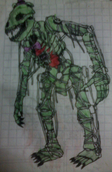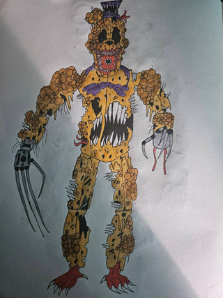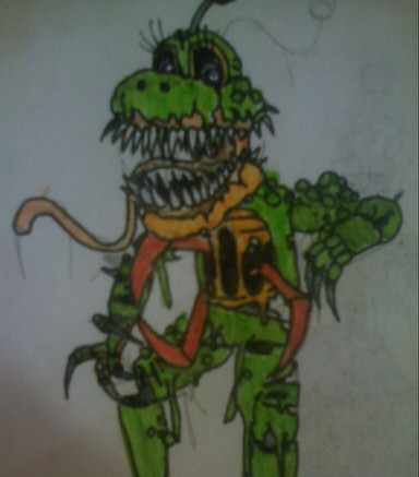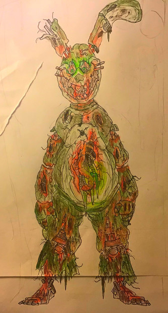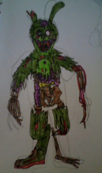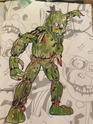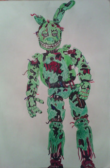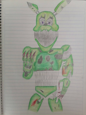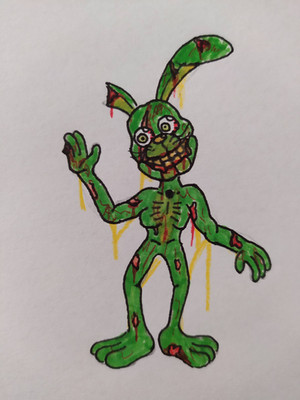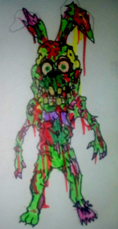 "Well, that's probably the creepiest thing I ever drew." Well your very much right, because that thing looked exactly like a cartoonish zombie Spring Bonnie ;-;