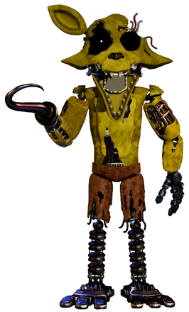 The incident that occurred in 1980 shook the popularity and reputation of Springfox a lot, so much so that when the Fredbear's characters were at Freddy's, Springfox was the only one who wasn't present there (there were only Fredbear, Springbonnie and Silver Chica at Freddy's). After the pizzeria closed, Freddy's tried to give him a chance at Fredbear's and Friends, but his reputation was still low.The original Springfox (the one owned since '75) was kept in a Safe Room next to the original Silver Chica, and in 1987, it was taken to the Parts and Services room, where it stayed with her friend Gray and the other Withereds. He could be seen in the Main Hall, Hallway and the right duct. He could try to jump on you just like Foxy, however, he wasn't immune to the mask, let alone sensitive to light.