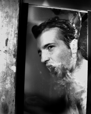 Again I love the flatness, and the texture of the wall this time. The distress of the surface makes you want the subject to be distressed, but he seems hopeful?