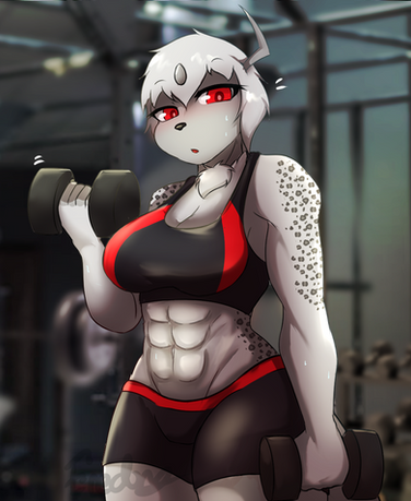#absol #anthro #anthrofemale #anthrofurry #anthropokemon #anthropomorphic #buffgirl #buffwoman #dumbbell #pokemon #pokemonanthro #pokemonoc #sportsbra #sportswear #workingout #muscularfemale #absolanthro #anthrocharacter #absolpokemon