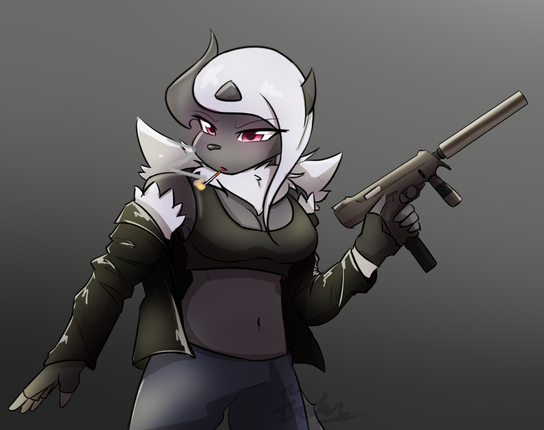 #anthro #doodle #gun #pistol #absol #anthrofurry #anthropokemon #anthropomorphic #doodledrawing #midriff #pokemon #pokemonanthro #pokemonoc #absolanthro #anthrocharacter #absolpokemon #openjacket #midriffshowing
