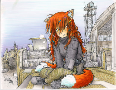 Megumi IS a character from Megatokyo. Technically, she's the first girl to show up in Megatokyo (she's Kimiko's co-worker at the Anna Millers). I have a bad habit of coloring Megumi's hair the same as Miho's, when in truth Megumi's hair is redder than Miho's is. Megumi doesn't usually look this grim