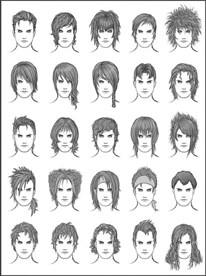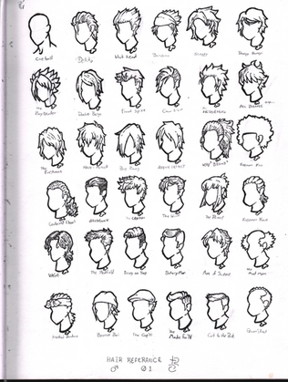 Oh god... This picture is really old. All I did was Google "Men short hair" and picked a few I liked. Other than that I referanced games (Link) and my own imagination (Jacob).
