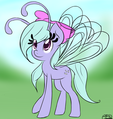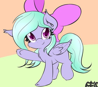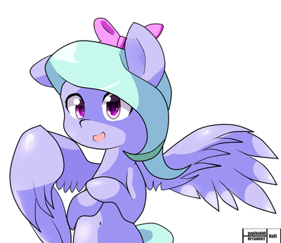 Pose is a bit stiff, and it's a bit too "cutesy" to be "the cutest in existence" to me. I know that makes no sense, but basically you're just making it too anime-styled with things such as the HUGE bow, the really sweet smile, and the eye going through the hair.